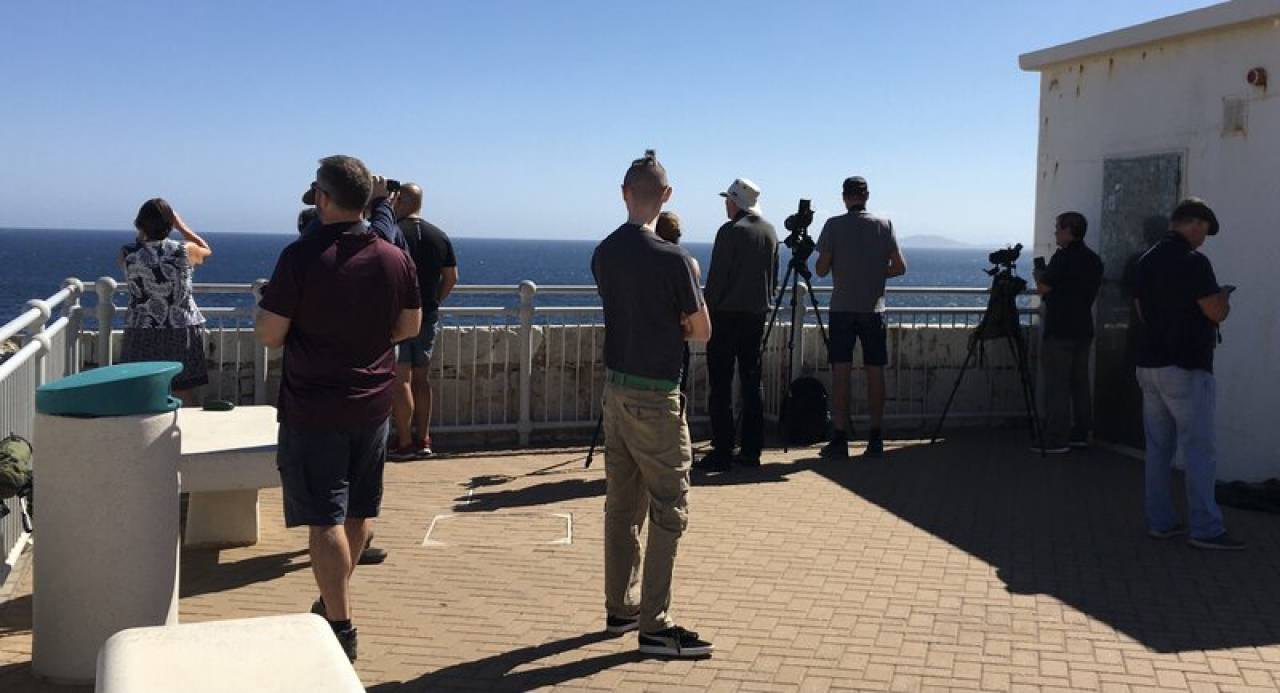 A mix of beginners and seasoned birders met at Europa Point in the afternoon for a socially distanced sea watch. Resident species in the area included some twenty House Sparrows, a Common Kestrel and a pair of Ravens. A Ruddy Turnstone was on the rocky shore below. Approximately a couple of hundred Cory’s Shearwaters were present, but most were far from shore and we did not witness the feeding frenzy that has typified EuroBirdwatch in recent years. There were also three Balearic Shearwaters. Some 40 Black-Headed Gulls were below the point and these were joined by an Audouin’s Gull and seven Mediterranean Gulls. A smart adult Lesser Black-backed Gull also flew by. Two Great Cormorants were seen, with the species beginning to return to the area for the winter. There was a steady passage of Northern Gannets into the Mediterranean, with some twenty birds counted. Four Sandwich Terns and seven Common Terns flew west towards the Atlantic, the latter flock chased by a dark morph Arctic Skua. There were also two Great Skuas.