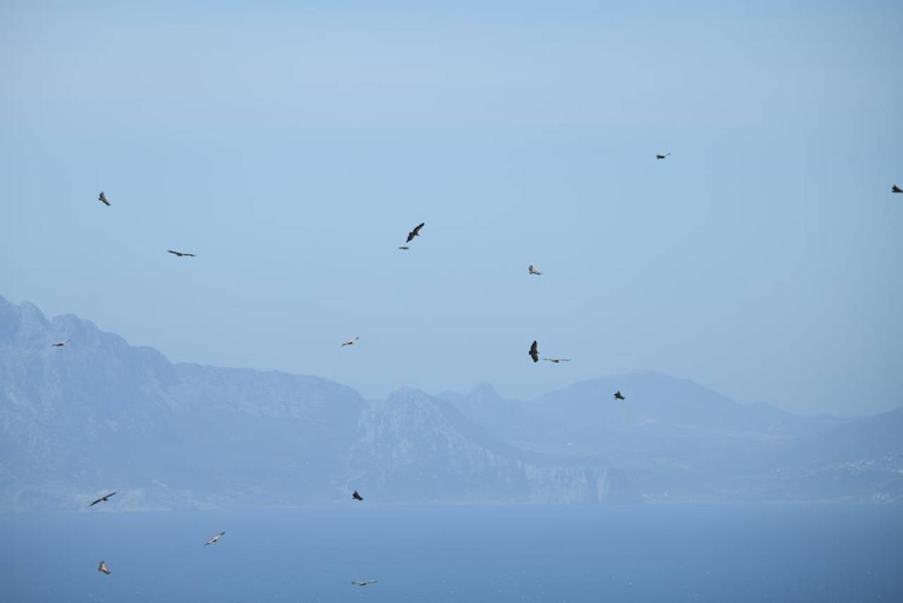 The day started with fresh westerly winds in the Strait providing ideal conditions for migrating raptors. Early in the morning numbers of Honey Buzzards made their way north, arriving at Europa Point at a good altitude, and then soaring over Windmill Hill and gaining height on the up-draughts soaring over the Rock and heading north. By mid morning, conditions for large soaring birds, mainly Griffon Vultures and Short-toed Eagles, were optimal. The first flock of vultures of about five birds, managed the gauntlet of Yellow-legged Gulls and the Peregrines and quickly passed low over the Observatory. Several Short-toed eagles followed, and these were harried by the Peregrine, but most managed to avoid the falcon. Then by 11:00hrs a large flock of Griffon Vultures numbering over fifty birds, approached Europa Point, with many flying low over the sea and most making land, whereupon they soared against the backdrop of Jebel Musa, and quickly headed north.