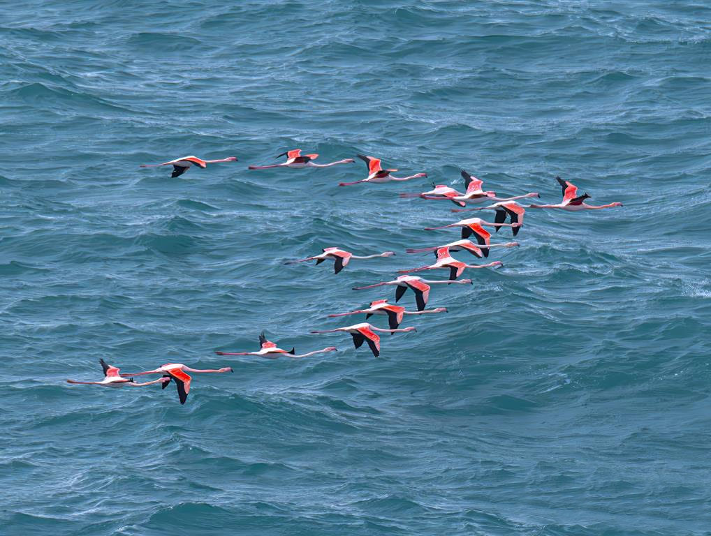 A flock of 38 Flamingoes flew west over the airfield and headed towards the Palmones estuary.